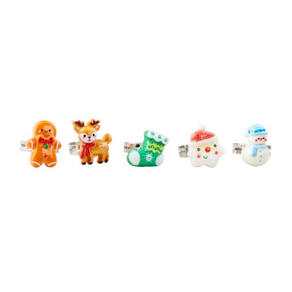 The Stocking Dress-Up Ring Set is the perfect accessory for the holiday season. This set includes five adorable dress-up rings, each featuring a different Christmas character on top. From Santa Claus to Rudolph the Red-Nosed Reindeer, these rings are sure to bring a festive touch to any outfit. Made for children ages 3 and up, these rings are safe and easy to wear. Whether you're attending a holiday party or just want to add some holiday cheer to your everyday look, the Stocking Dress-Up Ring Set is a must-have. Get ready to sparkle and shine with these charming Christmas rings!