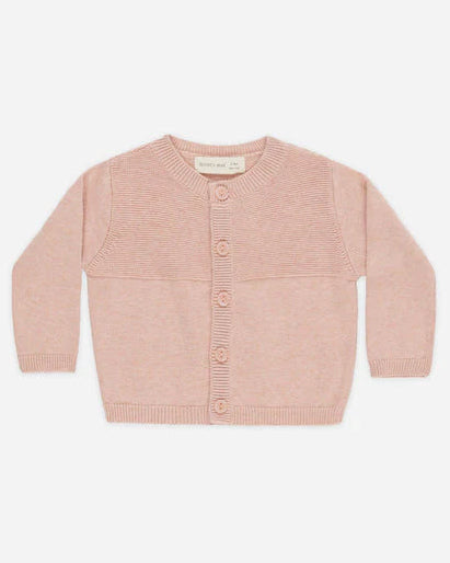 Quincy Mae's Knit Cardigan features a charming contrast knit design, with ribbing at the neck, wrists, and waist, with faux shell buttons for an extra sweet touch. Pair with our Knit Pant to complete your little one's look.