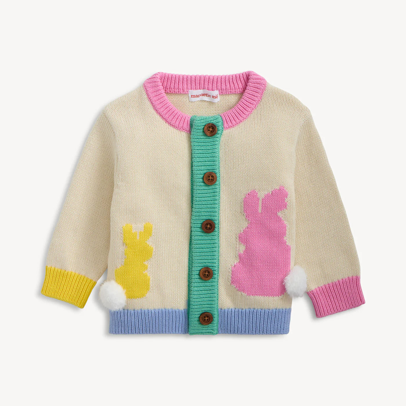 Magnetic Me Intarsia Cardigan W Bunny Pink Neck