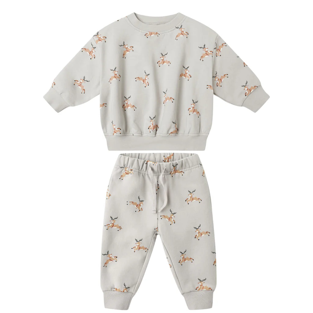 Quincy Mae Relaxed Fleece Sweatshirt & Sweatpant SET Reindeer